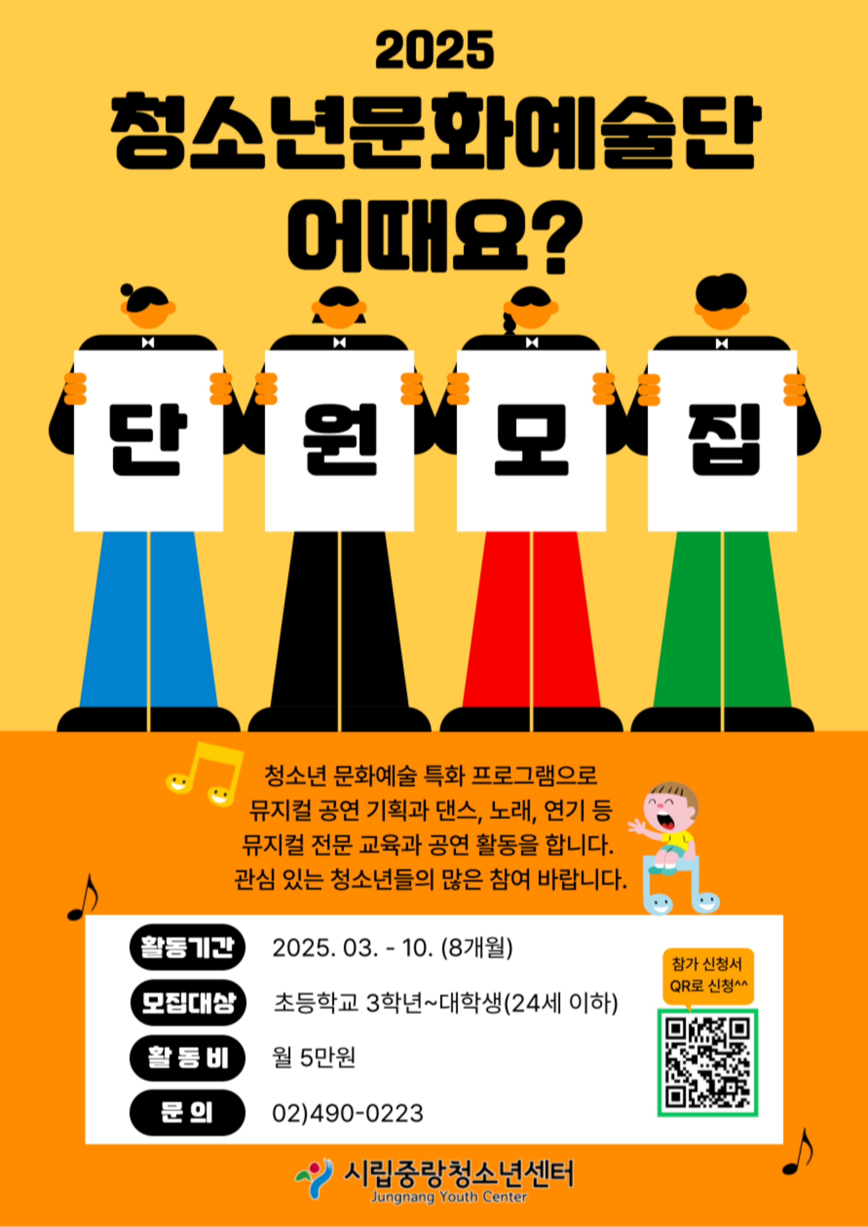 청소년 문화예술 특화 프로그램으로 뮤지컬 공연 기획과 댄스, 노래, 연기 등 뮤지컬 전문 교육과 공연 활동을 합니다.
