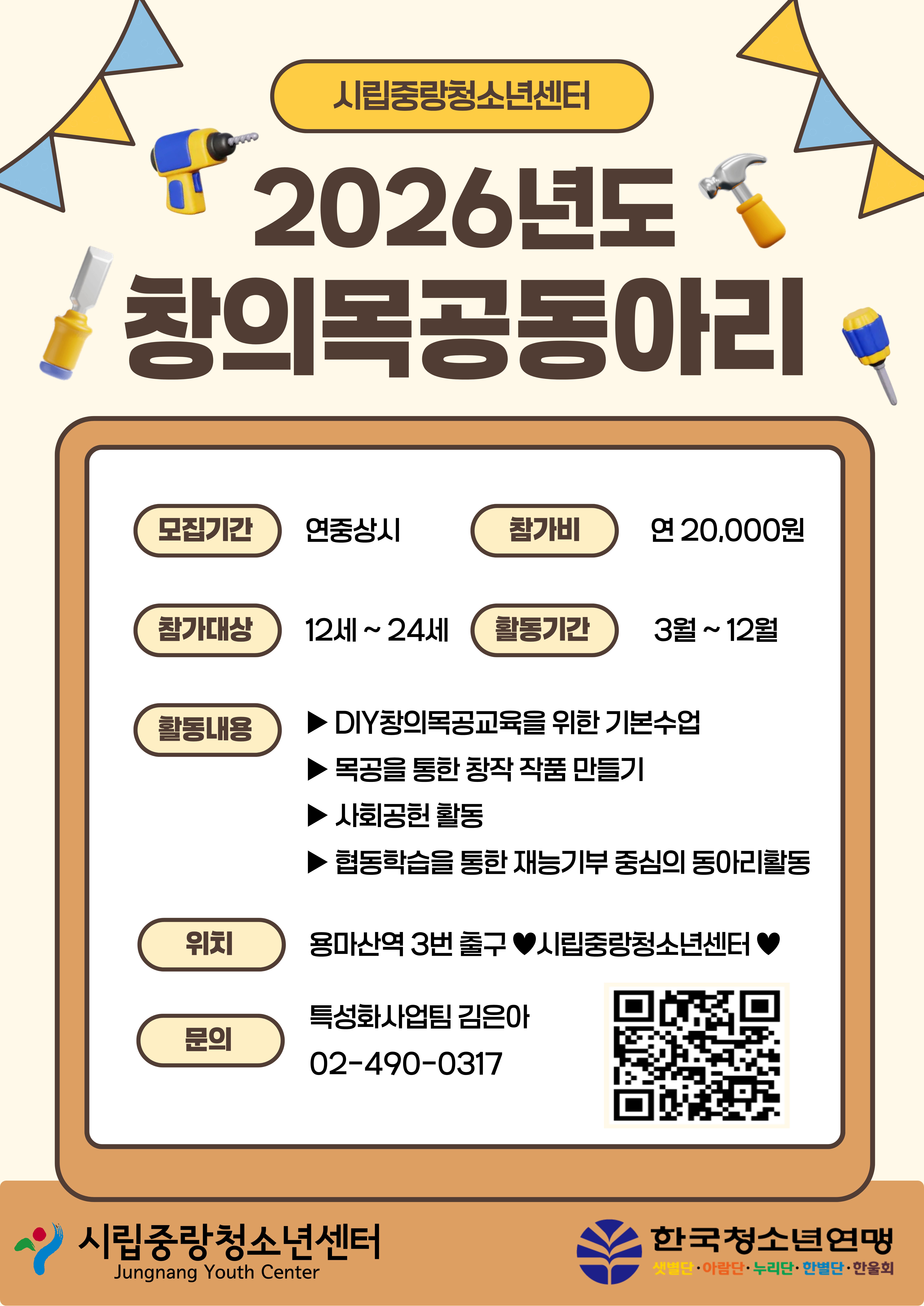 창의목공동아리는 목공에 관심 있는 친구들이 모여 이론교육과 실습활동을 통해 목공기술을 습득 및 지역행사 및 축제에 참여해 재능기부 봉사활동 진행