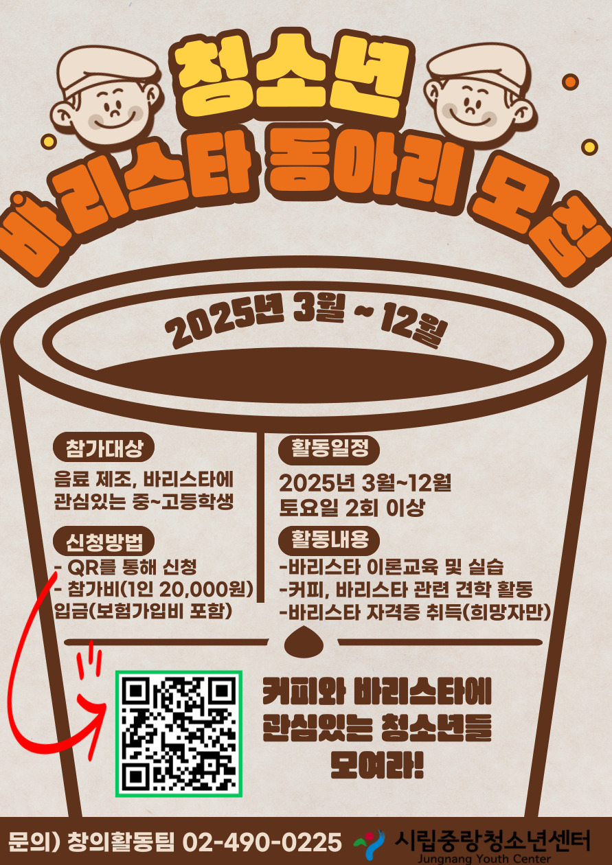 커피, 바리스타에 관심 있는 청소년들을 모집합니다!