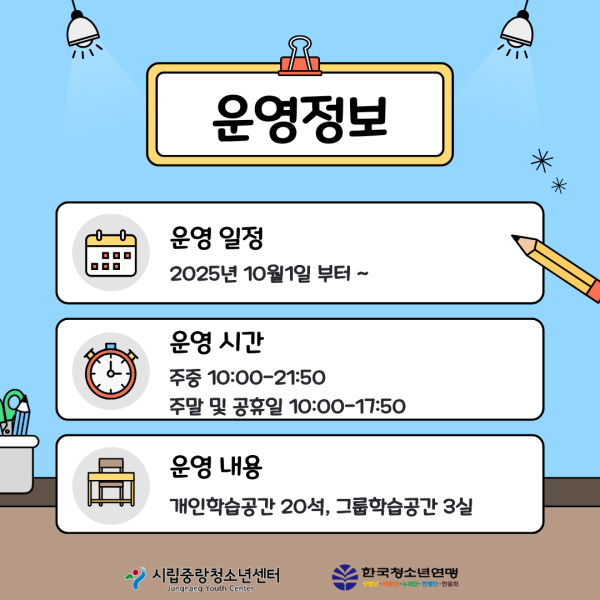 시립중랑청소년센터 스터디카페 읽GO쓰GO 전격 OPEN
